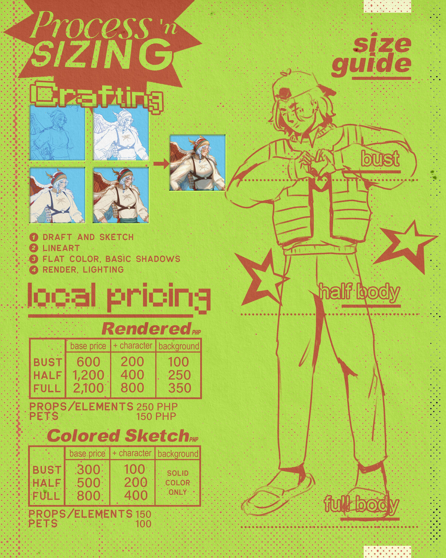 ❁ One major revision only for sketch (changing submitted request content e.g. character pose). +25PHP for any revisions beyond that.